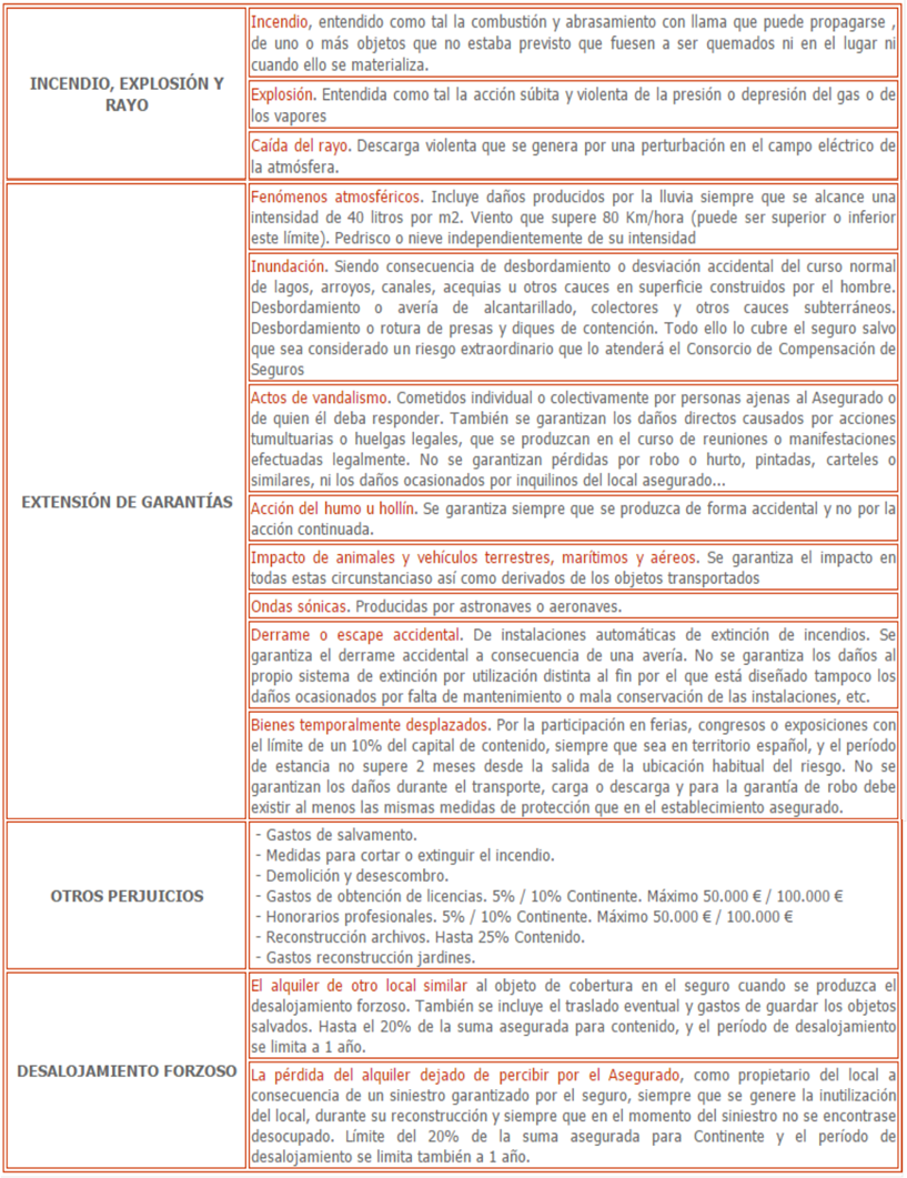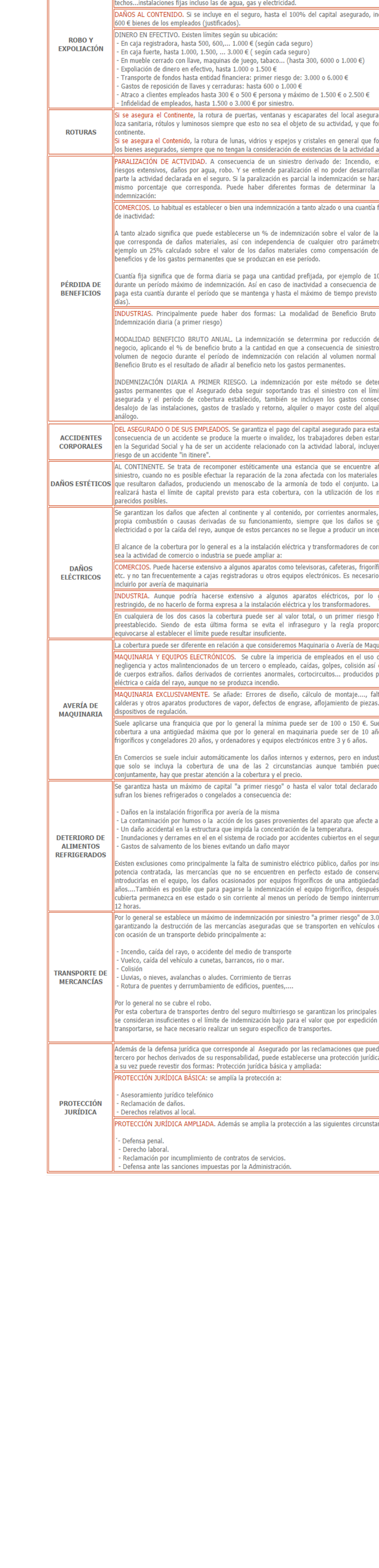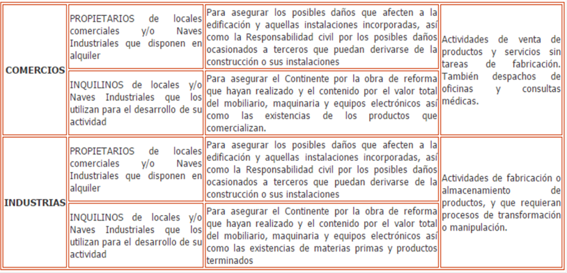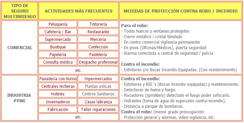 seguros multirriesgo, tanto de comercio como de industrias, suelen incluir de