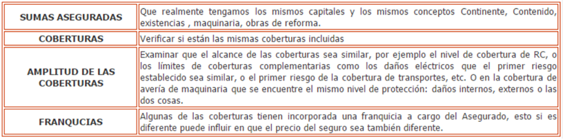 COMPARAR LAS COBERTURAS DE 2 O MAS SEGUROS.