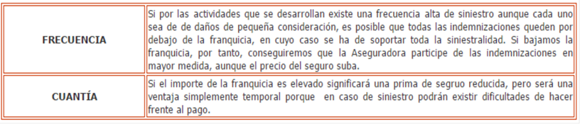 relación a determinadas coberturas aparezcan franquicias, que sirven por un